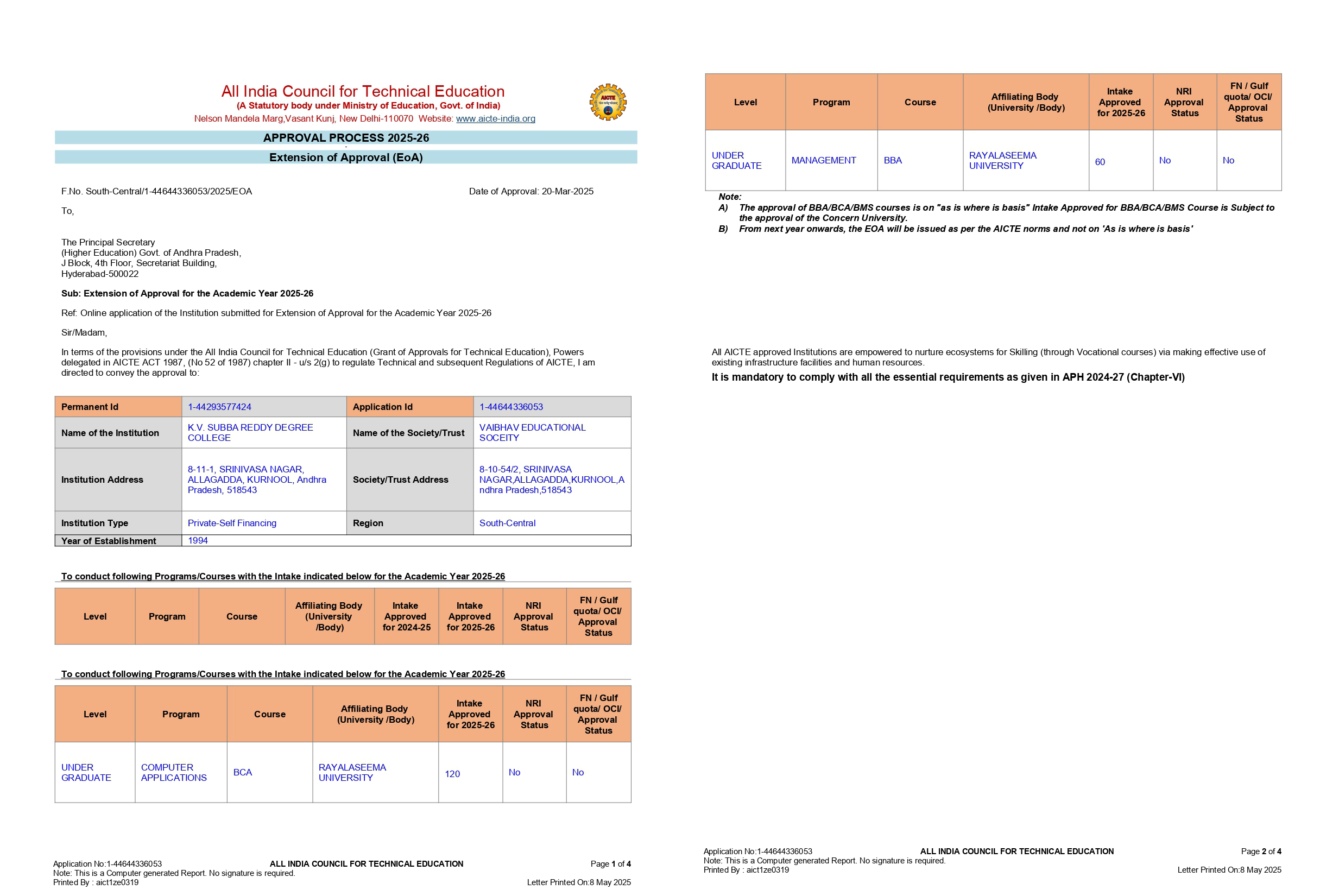 AICTE Extension of Approval (EoA) 2025-26